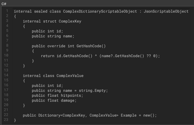 Display and edit dictionaries with any key type — even complex or nested ones — directly in the Unity Inspector.